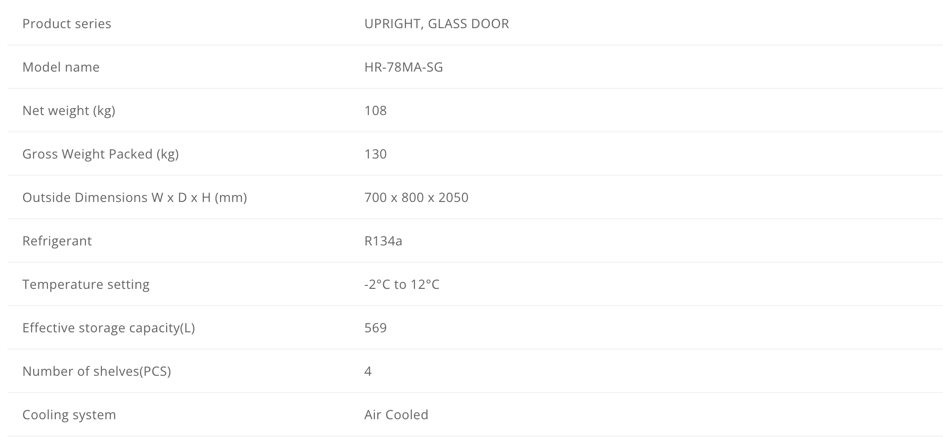 PRODUCT BROCHURE (PDF) INSTALLATION-MANUAL (PDF) Product Drawing HR-78MA-SG (PDF) HACCP Certificate (PDF)