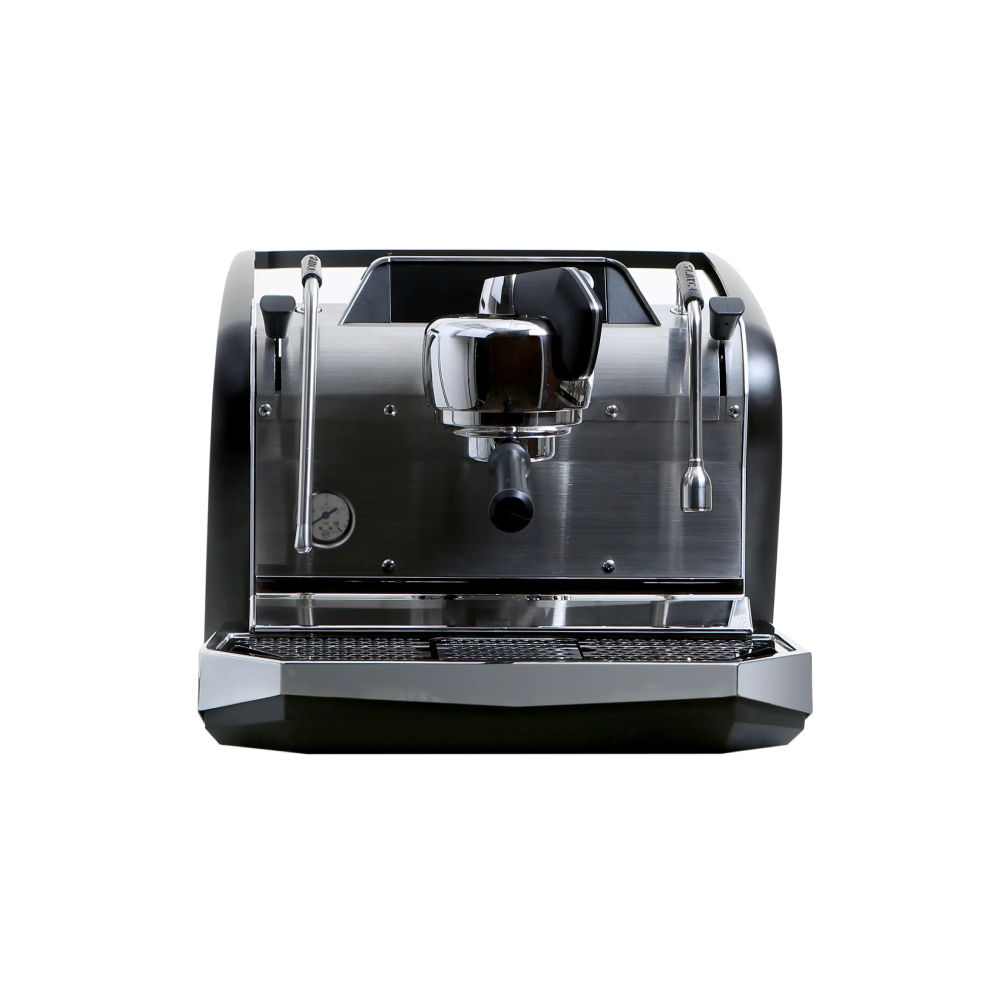The SLAYER Steam Single features matte blackpowder-coated cup rail and wings, anodized aluminum body panels, Soft Touch™ portafilters and Onyx Duratex™ actuators.